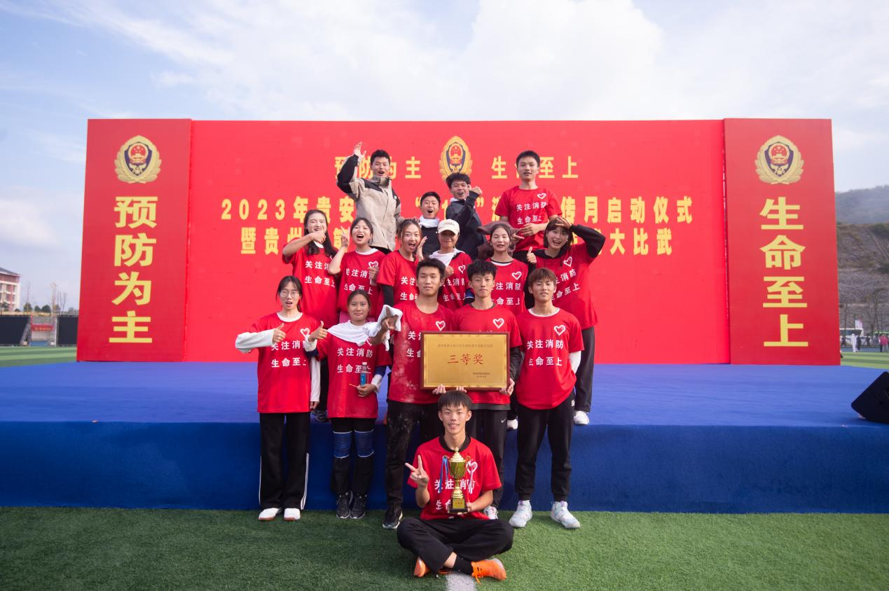11月2日,由贵州省教育厅、贵州省消防救援总队、贵安新区管委会主办的“2023年贵安新区‘119’消防宣传月暨贵州省第七届大学生逃生技能大比武活动”在我校南书院运动场顺利举行。我校体育学院学子组成的代表队技能娴熟、配合默契、奋力拼搏,在“消防逃生技能大比武”中喜获三 等奖;同期举行的全省11.9消防宣传月启动仪式上,保卫处消防科负责人邵昊同志荣获“全省119消防先进个人”。