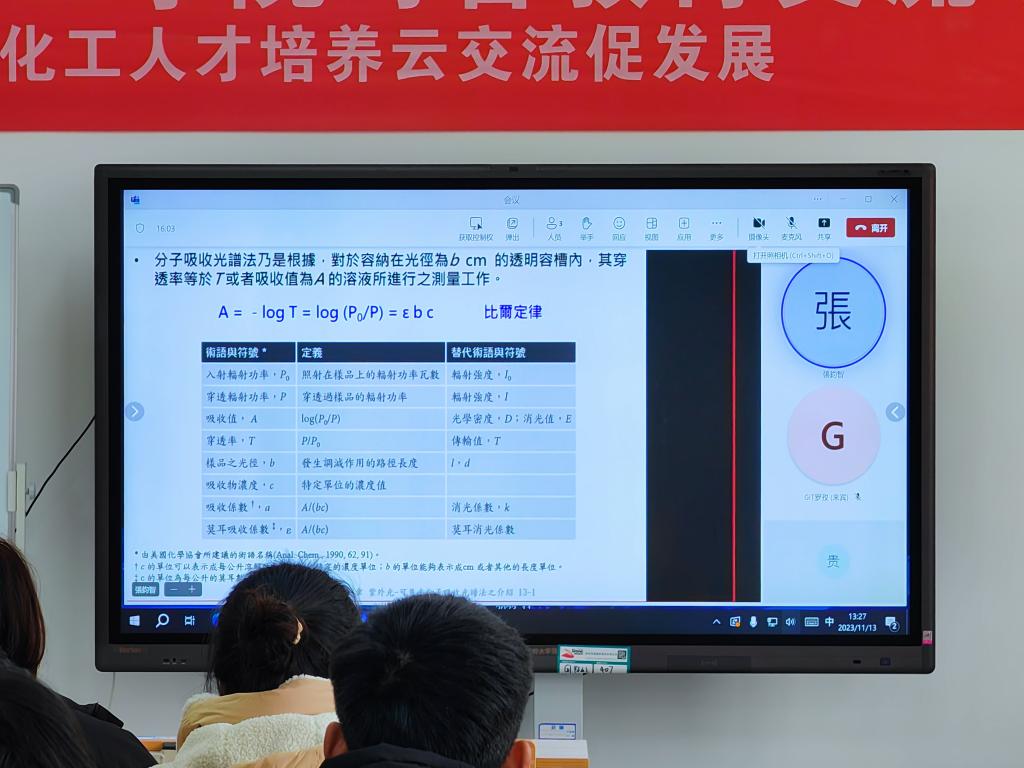 (中国文化大学化工材料学系张钧智老师通过线上直播方式为我校学生授课)
