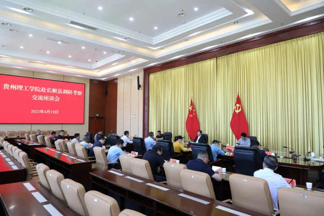 本网讯(党政办公室) 为深入学习贯彻党的二十大精神,深入开展学习贯彻习近平新时代中国特色社会主义思想主题教育,进一步夯实办学初衷,充分发挥高校服务地方经济发展职能,助力长顺县加快新型工业化高质量发展。4月19日,校党委书记苏向东带队赴长顺县就校地合作、人才培养和服务地方经济发展等相关工作开展专题调研。长顺县县委书记贺聚轮,县委副书记、县长罗仕凯,县政协主席万红梅,县领导金兴发、曾松林、叶黔松以及县直有关部门主要负责同志等陪同调研或参加座谈。