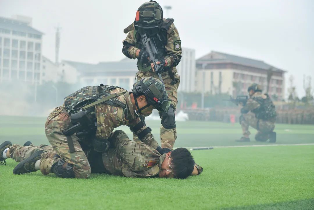 “按计划进行”“标兵就位。分列式,开始!”随着校长潘良明及承训指导员一声令下,2800余名2023级新生昂首阔步走过主席台前,嘹亮的口号,稳健的脚步,英姿飒爽朝气蓬勃。军事技能汇报表演,女子军体拳队动作铿锵,体现了巾帼不让须眉的风采;应急棍术动作有力,彰显了威武不屈的气势;战术方队配合默契,展现了顽强不屈的意志。