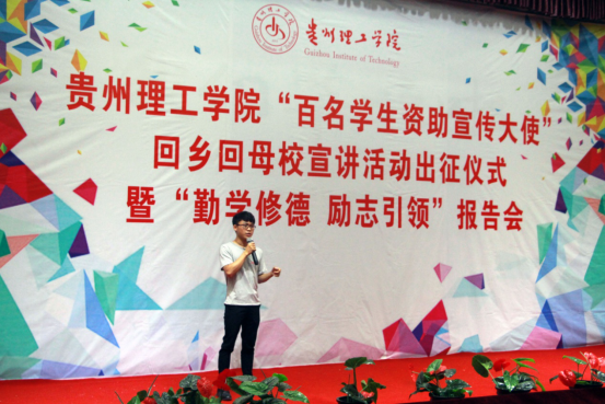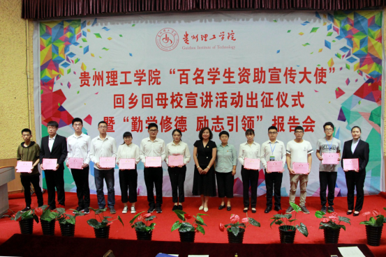 本网讯(学生工作部 史明华)学生资助是一项重要的保民生、暖民心工程,事关脱贫攻坚、社会公平,为充分发挥受资助学生政策传播和励志引领作用,提高全社会对学生资助政策的知晓度,更好地发挥资助工作助困育人功能,形成“解困—育人—成才—回馈”的良性循环,6月27日晚,我校举行了“百名学生资助宣传大使回乡回母校宣讲活动”出征仪式暨“勤学修德 励志引领”报告会。我校100名资助宣传大使及各学院受资助学生共300余人参加了活动。