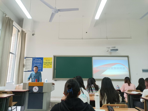 本网讯  为帮助同学们了解我国当前的发展形势和相关政策,增强当代大学生的责任感和使命感,2023年5月24日上午,校党委委员、副校长胡兴灿在贵安校区G1117教室以“开创高质量发展新局面”为题给外国语学院22级的学生们上了一堂精彩的形势与政策课。