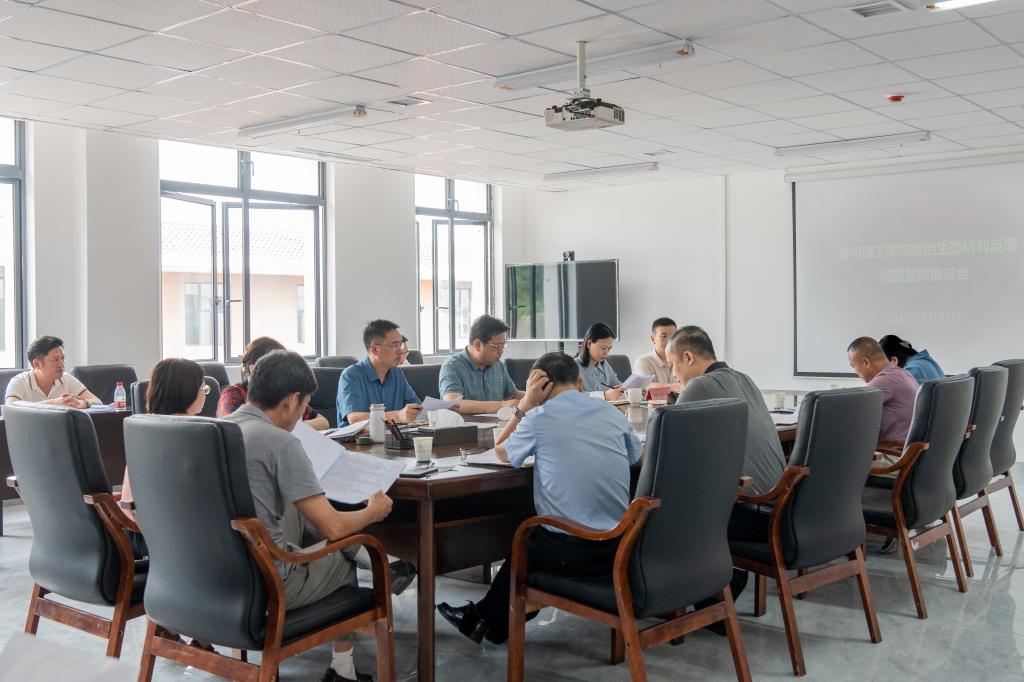 本网讯  8月25日上午,贵州理工学院2022年政治生态分析研判反馈问题整改推进会在综合楼520会议室召开。校党委书记苏向东,党委委员、纪委书记、监察专员贺梦依,党委委员、党委组织部部长左柏州,党委委员、党委宣传部部长、党委统战部部长李朋出席会议。会议由贺梦依主持。