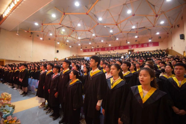 “每一段值得铭记的青春,始终是与祖国同向而行的青春,是挥洒汗水铸就的青春,是依靠学习走向未来的青春,是在平凡中孕育伟大的青春。”校长潘良明说。希望同学们以奋发之姿勇挑国家民族重任,与伟大的祖国一起奋斗、一起成长,为实现中华民族伟大复兴中国梦而不懈奋斗。希望同学们将“知行至善、厚积薄发”的校训精神内化于心、外化于行,坚守“追求卓越”的进取之心,将所学应用于实践,以“人一之、我十之,人十之、我百之”的奋斗姿态,在攀峰登高中奋勇前行,在攻坚克难中锤炼意志,在奋楫争先中成就自我。希望同学们在新的人生阶段,时刻增强知识更新的紧迫感,始终把学习作为立身做人的永恒主题,向他人学习、向世界学习,养成学贯中西的学识、胸怀天下的气魄、求真求善的质朴、善作善成的担当。希望同学们从“平凡”处起笔,投身社会的巨浪和时代的洪流中去,以平凡之心诠释坚守之志,在历史中留下“不平凡”的痕迹。