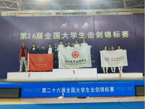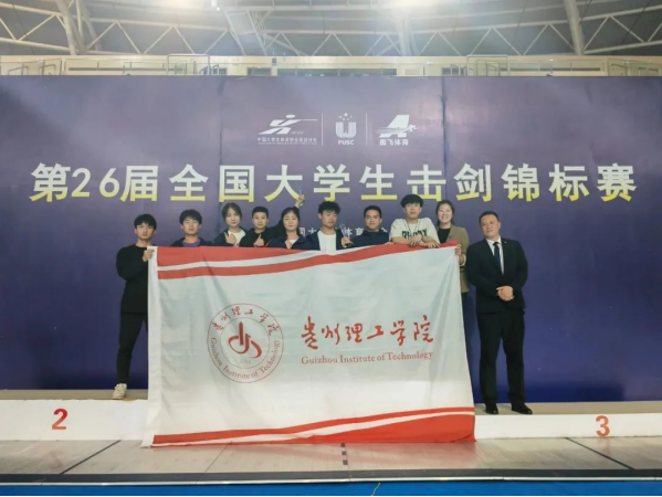本网讯 在刚刚落幕的第26届全国大学生击剑锦标赛中,贵州理工学院击剑队8名队员在汤志伟、孙赫男教练率队下,佳绩频传,创造了一金、两银、一铜、第五名的历史最好成绩!