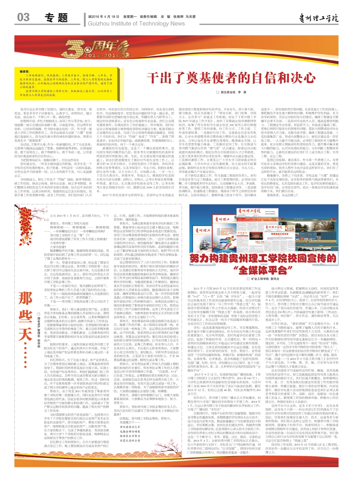 本网讯(宣传部 王爽)近日,中国高校校报协会公布了2016年度中国高校校报好新闻评选结果,我校化工学院化学工程与工艺141班霭均同学的参评作品《围棋国手马晓春九段走进理工座谈对弈》荣获新闻摄影类一等奖;宣传部巫敏老师责编的《贵州理工学院校庆专刊》荣获版面类三等奖。