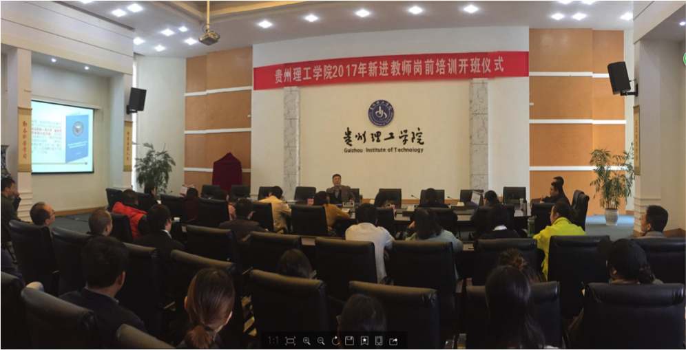 本网讯(教师工作处 曾英)10月27日上午,我校2017年新进教师岗前培训班开班仪式在喀斯特三楼会议厅举行,校长龙奋杰出席并讲话,全体60余名新进教师参加开班仪式。开班仪式由教师工作处副处长徐焱主持。