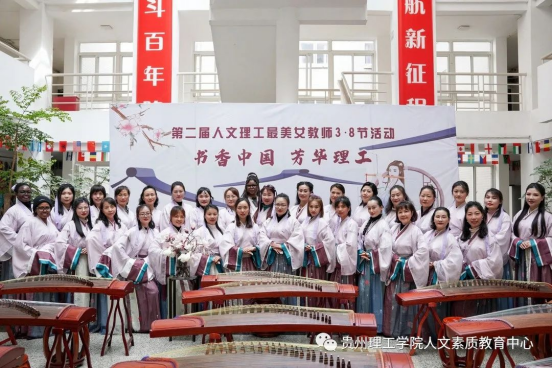 本网讯 (人文素质教育中心) 2023年3月8日,是第113个国际妇女节,我国第100个妇女节。贵州理工学院人文素质教育中心与校工会委员会以“书香中国 芳华理工”为主题联合开展“人文理工第二届最美女教师3.8节活动”。人文素质教育中心专业老师开展现场教学,我校38名零基础工科女教师通过2小时学习,完成古筝曲速成展演----《沧海一声笑》,期间还开展了功夫茶品鉴、文明礼仪、中华经典传统文化学习等交流活动,老师们在优美悠扬琴声中度过一个愉快有意义的节日。