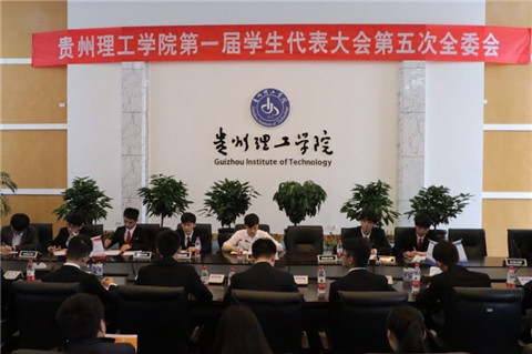 本网讯(校团委) 5月10日中午,贵州理工学院第一届学生委员会第五次全体会议在喀斯特会议厅举行。会议听取了学生会工作报告,依据《贵州理工学院学生会章程》,经学生委员无记名投票选举黄绍胜同学当选为第一届第二任学生会主席。校团委副书记李朋出席会议,全体委员参加会议。