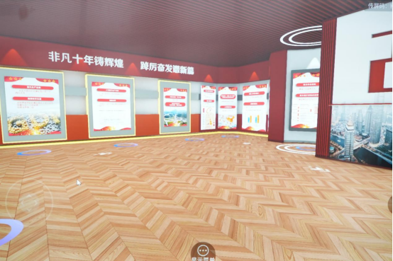 据介绍,场馆共有五个展厅,第一展厅以“高举中国特色社会主义伟大旗帜,全面贯彻新时代中国特色社会主义思想,弘扬伟大建党精神,自信自强、守正创新,踔厉奋发、勇毅前行,为全面建设社会主义现代化国家、全面推进中华民族伟大复兴而团结奋斗”为主要内容。第二展厅,以“党的十八大以来党的理论创新成果”为主要内容。第三展厅,以“全面建设社会主义现代化国家的基础性、战略性支撑,全面建设社会主义现代化国家的应有之义”为主要内容。第四展厅,以“党的二十大报告中的新表述新概括新论断”为主要内容。第五展厅,以“党的二十大代表风采”为主要内容。场馆的视频和内容,全部来自权威媒体,虚拟的元宇宙空间里让党的二十大精神触手可及,方便师生随时随地参观学习。