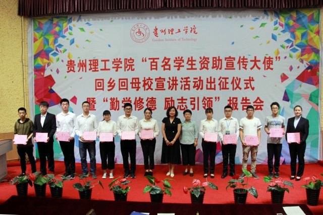 本网讯(学工部 史明华)学生资助是一项重要的保民生、暖民心工程,事关脱贫攻坚、社会公平,为充分发挥受资助学生政策传播和励志引领作用,提高全社会对学生资助政策的知晓度,更好地发挥资助工作助困育人功能,形成“解困—育人—成才—回馈”的良性循环,6月27日晚,我校举行了“百名学生资助宣传大使回乡回母校宣讲活动”出征仪式暨“勤学修德 励志引领”报告会。我校100名资助宣传大使及各学院受资助学生共300余人参加了活动。