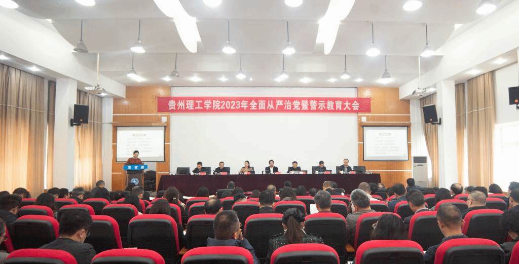 3月23日上午,贵州理工学院召开2023年全面从严治党暨警示教育大会。大会主要任务是:坚持以习近平新时代中国特色社会主义思想为指导,深入贯彻落实党的二十大关于全面从严治党战略部署,贯彻落实二十届中央纪委二次全会精神、十三届贵州省纪委二次全会精神,总结2022年工作,对2023年全面从严治党工作进行安排部署,科学分析全面从严治党新形势,面向新征程、部署新任务、开创新局面,坚定不移推动全面从严治党向纵深发展。校领导苏向东、胡兴灿、贺梦依、林长松、张开智,党委委员左柏州、李朋出席会议。