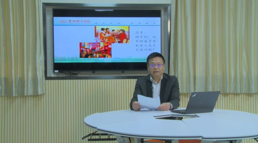 党委委员、纪委书记、省监委驻贵州理工学院监察专员贺梦依以《大学生当以自己的方式参与人民战争》带领同学们回顾了“浙大西迁”及“西南联大成立”这两件中国高等教育的历史大事件,引导大家从中领会爱国主义为核心的民族精神、追求真理的求是精神和刚毅坚卓的艰苦奋斗精神。并深情地寄语同学们要有自己的精神故乡,在打赢疫情防控这场人民战争中继续秉承爱国主义精神和艰苦奋斗的精神;要认真学习专业知识、党史国史、哲学经典和伦理经典,实现人生价值,成就美好时代。