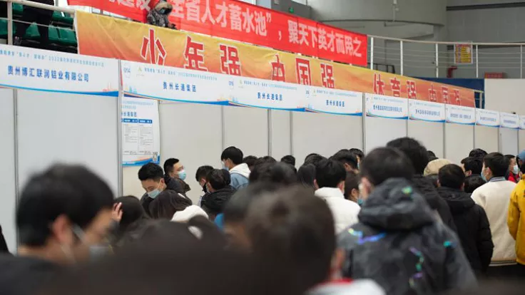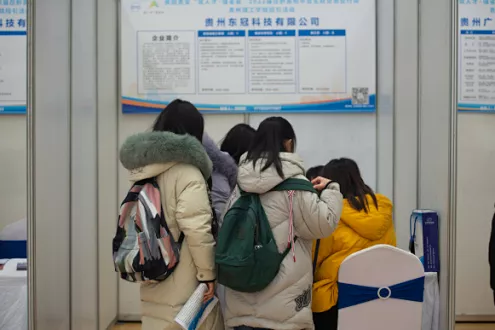 来自贵州理工学院机械制造专业的大四学生陈彬在贵州詹阳动力重工有限公司展位前咨询。“贵阳市为我们毕业生就业提供了很多就业政策,人才公寓,创业补贴等,很暖心。今天来了不少制造企业,希望能找到合适的工作,留在贵阳,建设贵阳。”陈彬说。