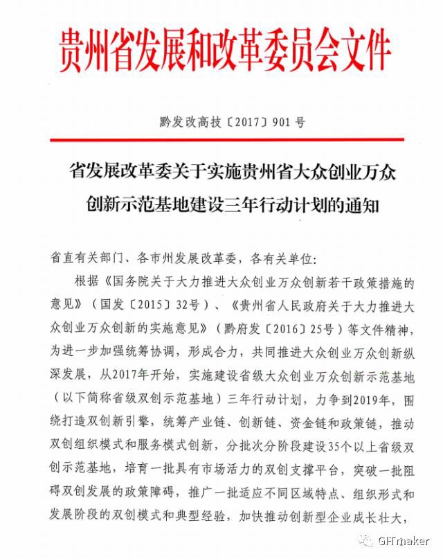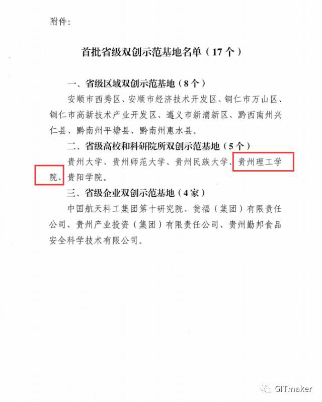 本网讯 日前,贵州省发改委印发《省发展改革委关于实施贵州省大众创业万众创新示范基地建设三年行动计划的通知》(黔发改高技〔2017〕901号),公布了贵州省首批17个省级双创示范基地名单,我校位列其中确定为省级高校和科研院所双创示范基地。