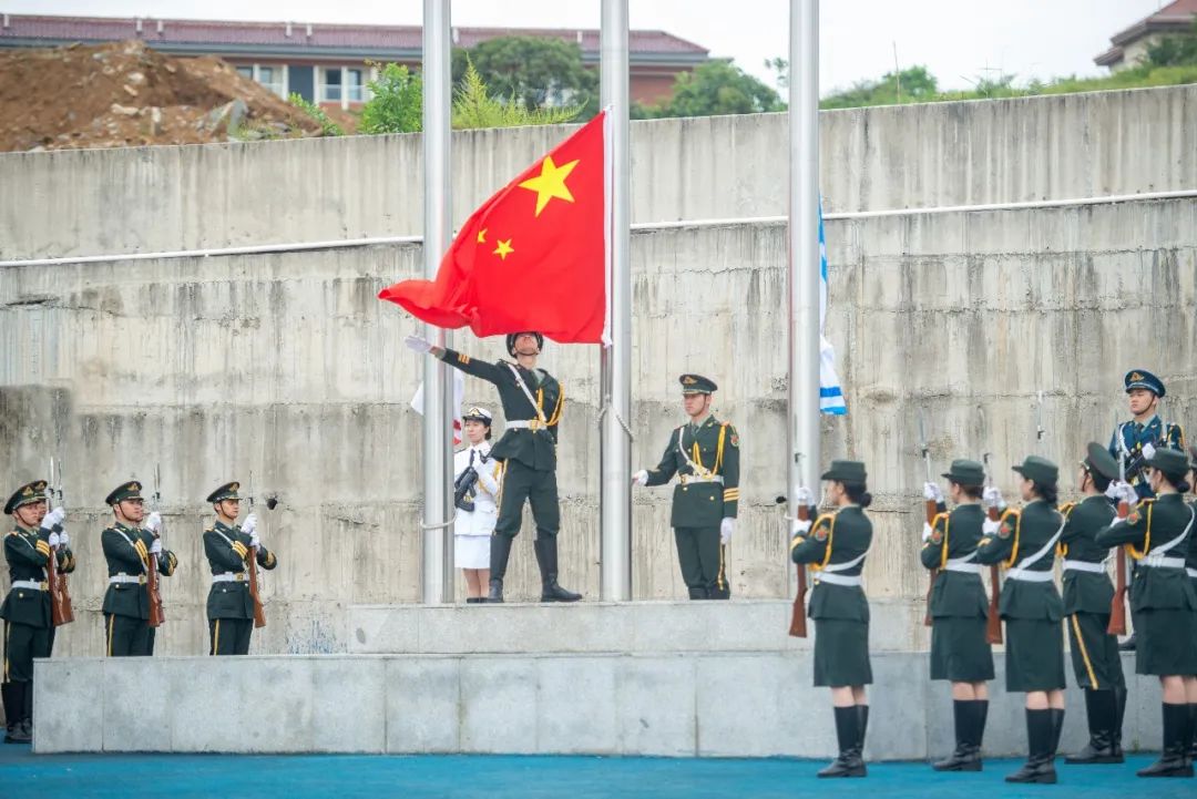 授2023级新生军训团团旗。