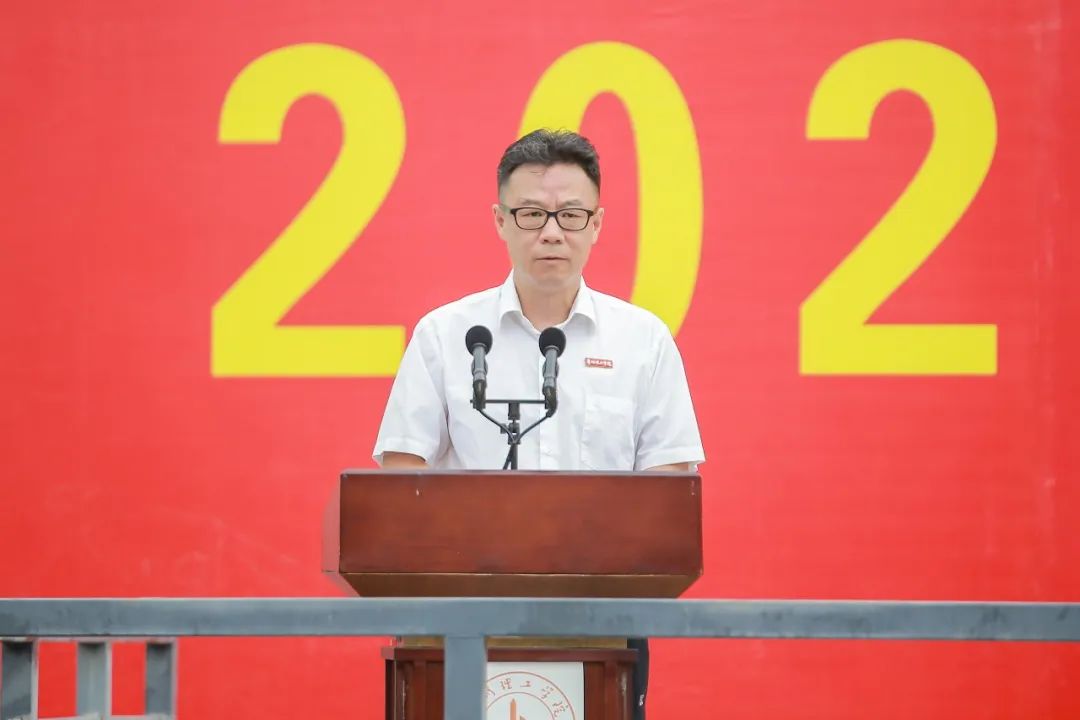 党委副书记、校长潘良明代表全校师生员工对2023级新生的到来表示热烈的欢迎,向伴随同学们一路拼搏的父母、老师和亲友们表示最诚挚的感谢!他以《不忘来时路 不负今朝景 不怠明日行》为题,授开学第一课,希望同学们在欣欣向荣的贵安大学城这片热土上,进一步充实知识、进一步扩容朋友圈、进一步拓展眼界和见识、尽快明确自己的人生方向、理想、追求,与师长、与同辈在新起点、新舞台、新征程上一起肩负理工人的新使命,书写理工人的新篇章。勉励同学们要知道来处,未来人生才有参照;把握当下,未来人生才有可期;仰望未来,当人生才有动力,要以更加昂扬和认真的姿态对待大学中的每一个环节,自我激励、自我提升,争取早日成为一位合格的人才。
