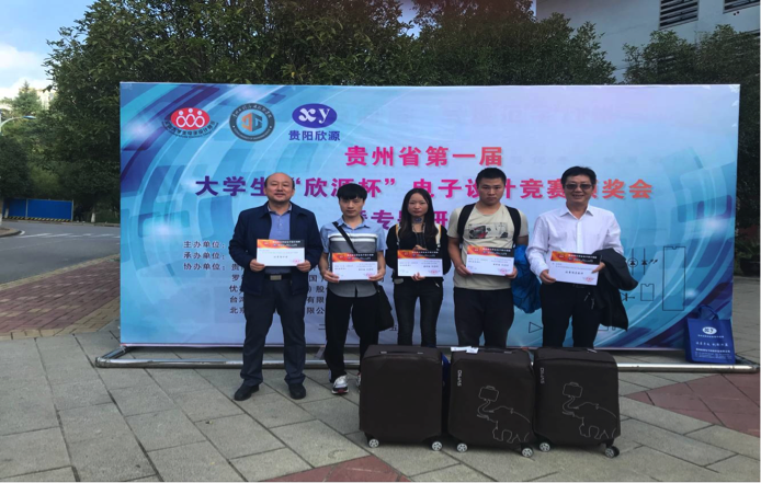 9月15日上午,在贵州工程应用技术学院举行的贵州省第一届大学生“欣源杯”电子设计竞赛颁奖会上,我校参赛队喜获一等奖一项、二等奖一项和三等奖三项的佳绩,张均老师获优秀指导教师奖。吴昌旭同学作为获奖学生代表上台发言。