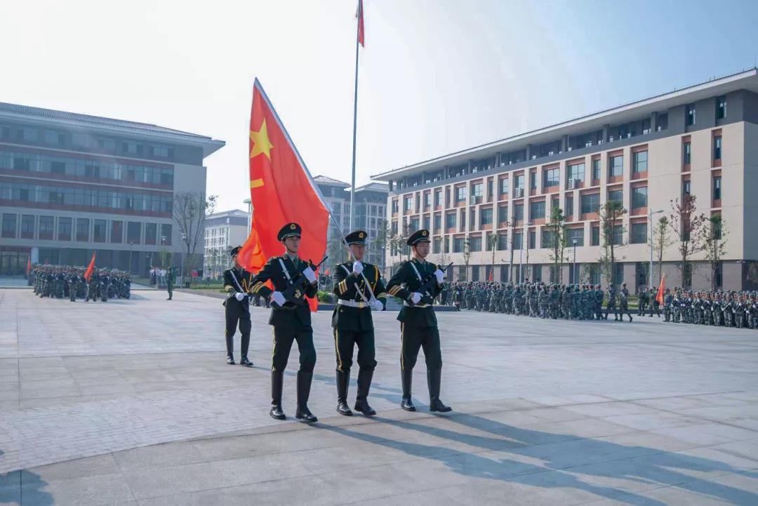 党委书记曾羽为获得2019级学生军训优秀连队的代表授锦旗。
