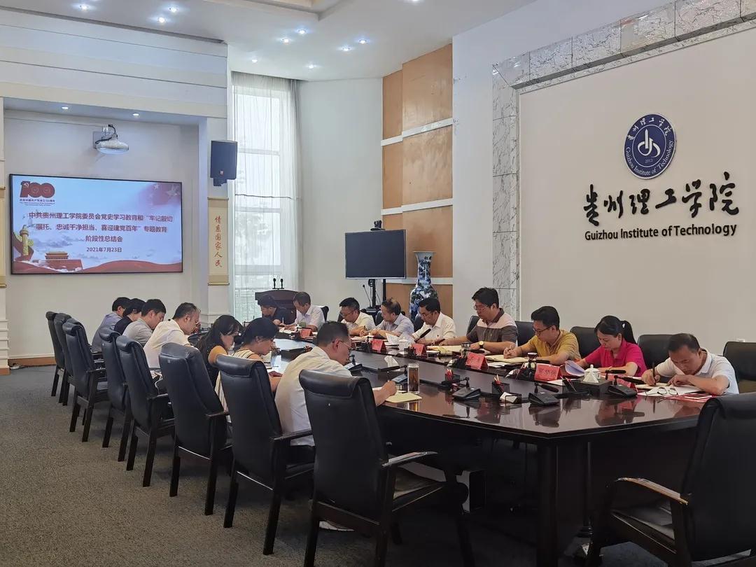 本网讯(党委宣传部 林春燕)7月23日下午,贵州理工学院党史学习教育阶段性总结会在喀斯特会议厅召开,校党委委员曾羽、苏向东、吴次南、高勇、胡兴灿、贺梦依、林长松、张开智、左柏州、李朋,校长助理莫立坡出席会议,党史学习教育领导小组成员、各指导组组长、专班成员,机关党委、各基层党总支负责人参加会议。党委副书记、校长苏向东主持会议。