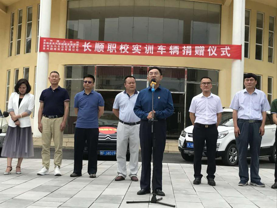 本网讯(经济管理学院 杨雁/文)2020年6月5日,贵州理工学院党委书记曾羽、副院长胡兴灿携经济管理学院党政负责人一行,赴长顺参加贵州理工学院帮扶长顺职业技术学校活动暨物资捐赠仪式。长顺县副县长金兴发、杨再豪出席活动,贵阳孟关汽贸城建设指挥部、贵阳市汽车经销商商会和贵州颖峰实业集团公司等企业负责人参加活动。