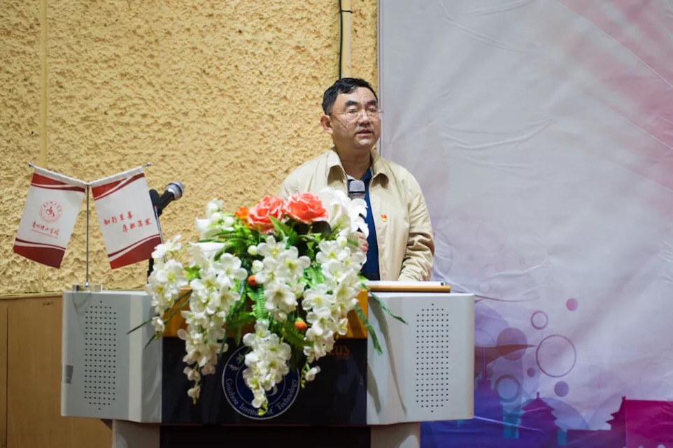院长龙奋杰代表学校党委、行政宣读了《致全校教职员工的慰问信》,向辛勤耕耘在教学科研、管理服务一线的全体教职员工致以节日的祝贺和崇高的敬意!向为贵理工发展作出贡献的全体退休老同志和长期默默支持学校工作、无私奉献的教职工家属致以亲切的问候和美好的祝福!向长期关心、支持、帮助贵理工建设发展的各级领导、全体校友和社会各界朋友们致以衷心的感谢!他表示,建校至今,全校教职员工始终秉承“知行至善、厚积薄发”的校训和“夯实基础、提升能力、保障质量、培育特色”的办学思路,以高度的使命感和责任担当,推动各项工作,学院办学条件日趋向好,教育教学水平稳步提高,人才培养质量显著提升。希望全体教职员工继续发扬“时不我待、只争朝夕、艰苦创业”的办学精神,以迎接本科教学工作合格评估为契机,以教育教学改革为抓手,牢记立德树人的根本任务,按照习近平总书记提出的“四有” “三者”好老师标准践行自己的庄严承诺。不忘初心、牢记使命,以“踏石留印、抓铁有痕”的干事激情续写贵理工新的辉煌。