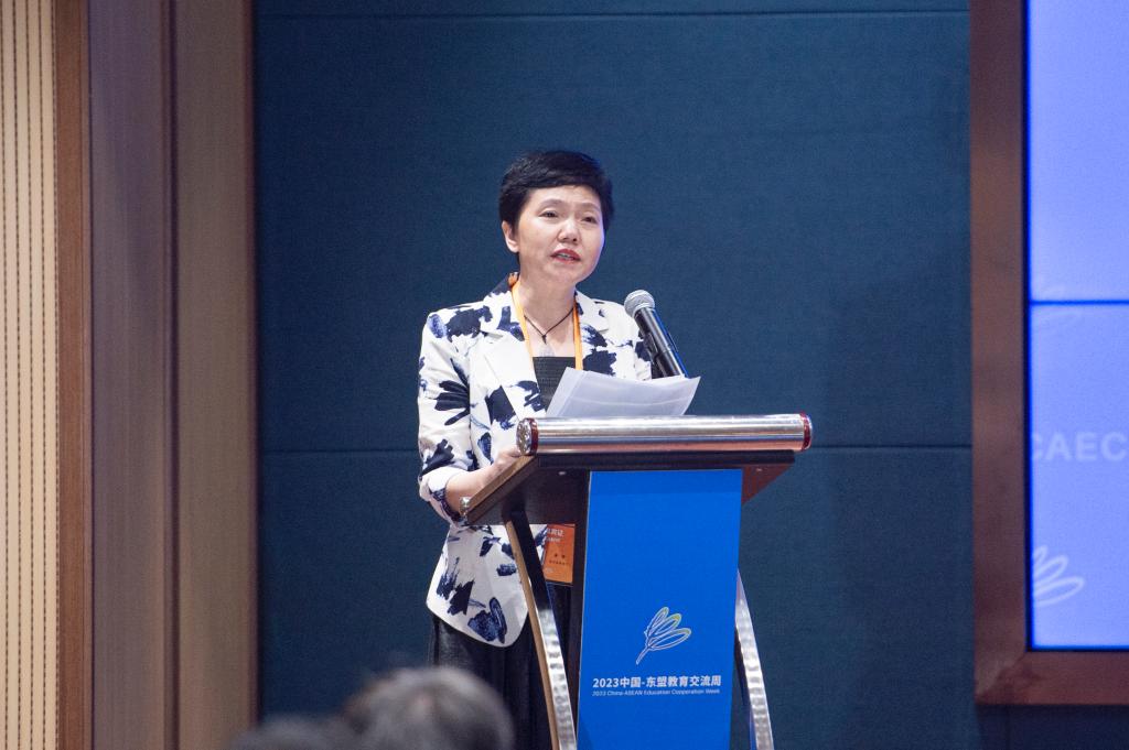 贵州省教育厅二级巡视员朱琴在致辞中表示,2022年,新国发2号文件的政策红利,也给贵州带来了巨大机遇。"人才是第一资源,创新是第一动力”。发展离不开人才,而人才的培养离不开教育。在数字经济蓬勃发展的今天,要实现经济社会持续健康发展,就需要高度适应数字经济与社会发展的数字教育作支撑。2023年全国教育工作会议强调要“大力实施国家教育数字化战略行动”“纵深推进教育数字化战略行动”。贵州与东盟国家在合作上具有天然的地缘优势,希望中国-东盟高校间能够进一步深化交流合作,推动建立中国-东盟教育共同体、创新共同体,在更高水平上开展教育和人文交流合作,在更高层次上开展创新创业人才培养。
