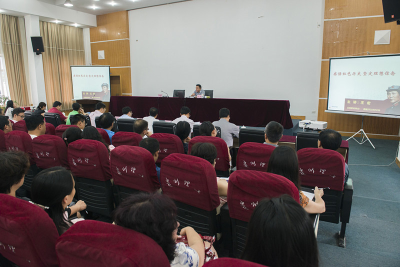 本网讯(组织部 李洋) 7月24日下午,“三严三实”专题学习研讨之“与信仰对话,与时代同行”党史学习研究专题报告会在喀斯特三楼报告厅举行。本次报告会特邀中共贵州省委党校 马克思主义与党的建设研究院院长、全国党建研究会特邀研究员、全国社会科学普及优秀专家、贵州省组织宣传专家咨询组成员、贵州省纪委特约研究员、贵州省党 史学会理事王宏教授,为我校科级以上干部带来以“感悟红色历史 坚定理想信念”为题的精彩报告。在家校领导及全校处科级干部共150余人参加报告会。