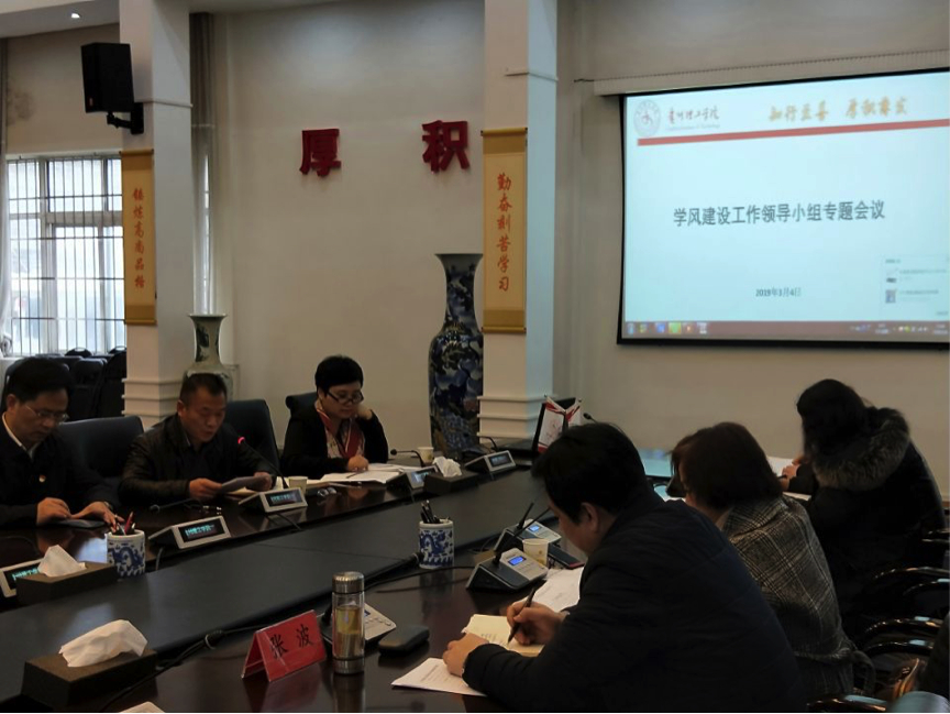 校学风建设工作领导小组组长张波副书记针对进一步加强学风建设提出四点工作要求:一是要提高认识,提升站位,凝心聚力;二是要围绕中心,形成工作合力;三是要层层落实责任制,做到领导干部一岗双责;四是要加强教师师德师风建设,提升教师教育教学能力水平。