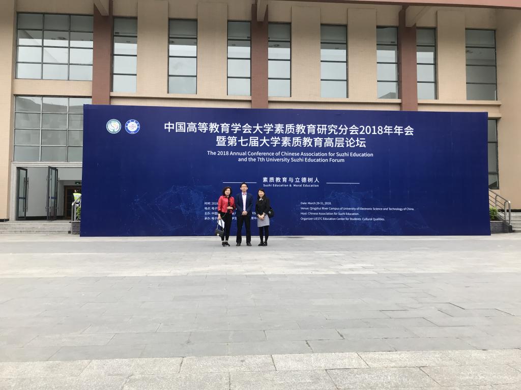 本网讯(学生工作部) 春风浩荡,杨柳如丝。3月29日至31日,中国高等教育学会大学素质教育研究分会2018年年会暨第七届大学素质教育高层论坛,在蓉城电子科技大学隆重召开。我校院长助理李滚率学工部和教师工作处负责人代表学校参加了本次高层论坛。