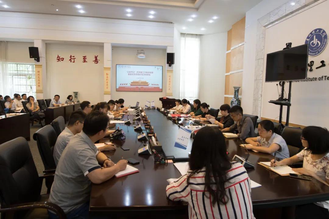 本网讯(党委组织部 谢海波/文)7月10日,我校“三级书记”抓党建工作推进会暨基层党支部组织生活观摩会在喀斯特会议厅召开,校领导曾羽、苏向东、吴次南、胡兴灿、贺梦依、高勇、林长松出席会议,党群部门负责人、各学院党总支书记、党支部书记参加会议。党委副书记高勇主持会议。