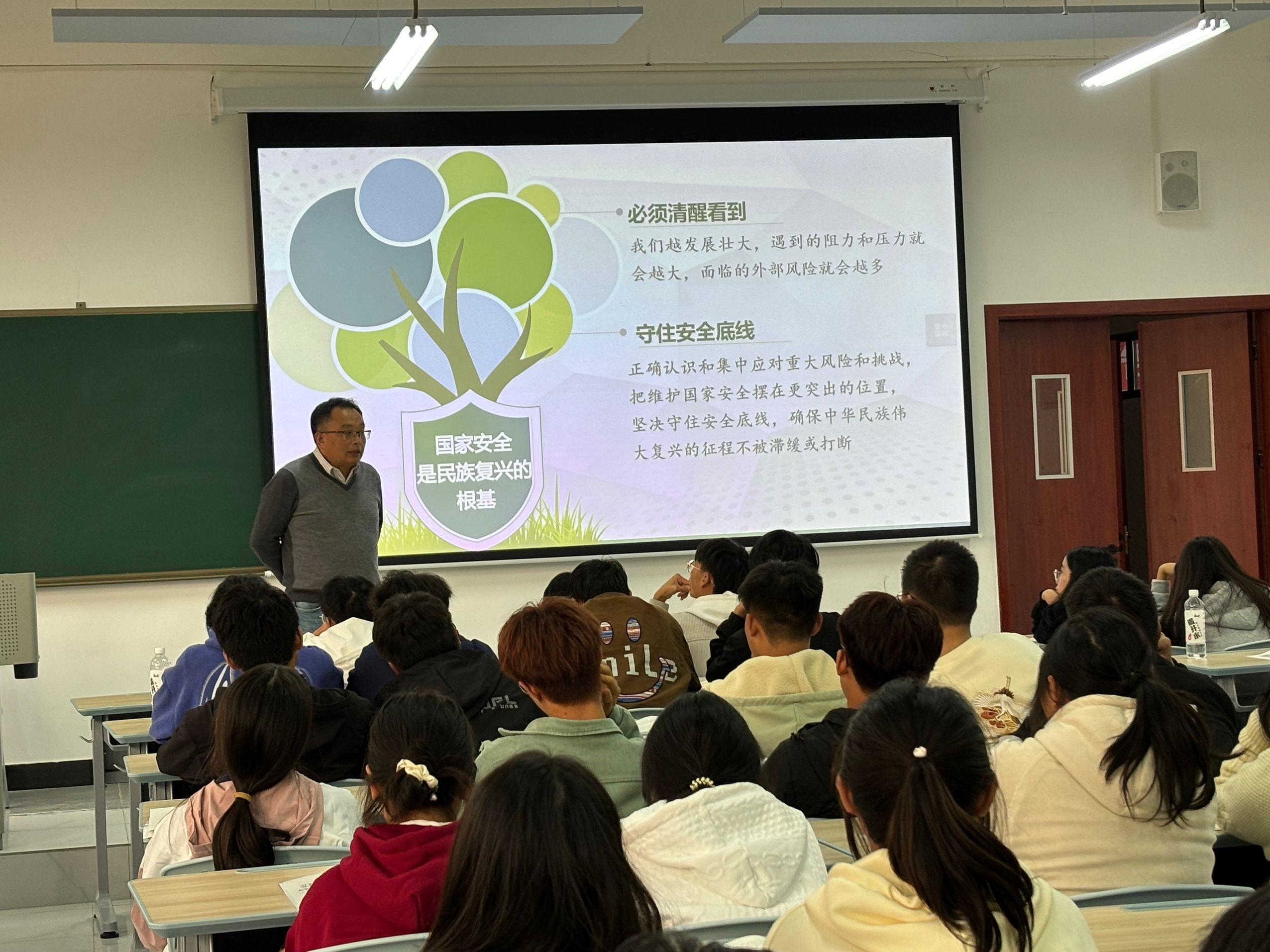 11月20日,副校长林长松为生物231班讲授“形势与政策”课。他围绕“以新安全格局保障新发展格局”为主题展开,鼓励同学们积极参与国家安全建设,增强国家安全意识,牢固树立“天下兴亡,匹夫有责”的理念,为实现中国梦贡献自己的力量。