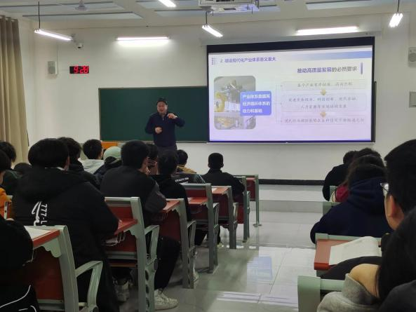 2023年11月22日、12月19日,校党委书记苏向东以“大力推进现代化产业体系建设”为题,分别为材料221、材料222、焊接211、交通211、交运211的学生讲授“形势与政策”课。苏向东结合专业特点,阐述了我国推进现代化产业体系建设的重大意义、面临的困难挑战、现实的方法路径以及青年学子肩负的使命任务。他勉励同学们,要进一步涵养家国情怀,强化使命担当,提升能力本领,扛起时代重担,不负青春韶华,自觉将个人成长成才融入党和国家事业发展的大局大势中,成为德智体美劳全面发展的社会主义建设者和接班人,为今后投身社会主义现代化建设伟大实践积蓄强大力量。