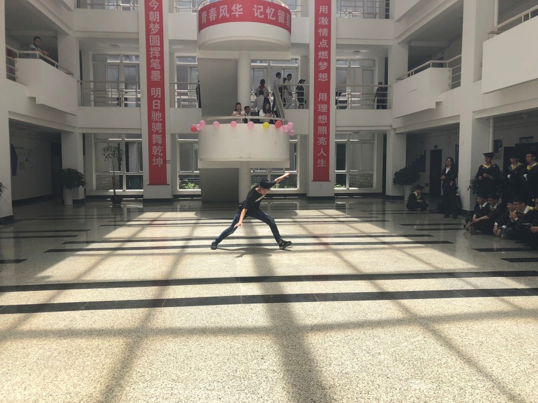 毕业典礼上,学弟学妹们为即将踏上新征程的学哥学姐们献上了精彩的表演,节目赢得了师生们阵阵喝彩和雷鸣般掌声。