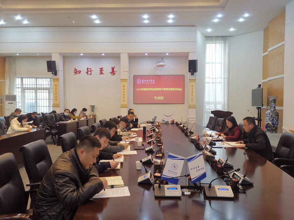 本网讯 2021年1月21日下午,校党委委员、纪委书记,省监委驻贵州理工学院监察专员贺梦依同志,在学校喀斯特会议厅,对2020年度提拔或平级调整任职的41名处级领导干部集中开展廉政谈话,进一步增强新任职处级领导干部对全面从严治党要求的认识理解,进一步增强其履职担当和廉洁自律意识,筑牢拒腐防变的思想防线。