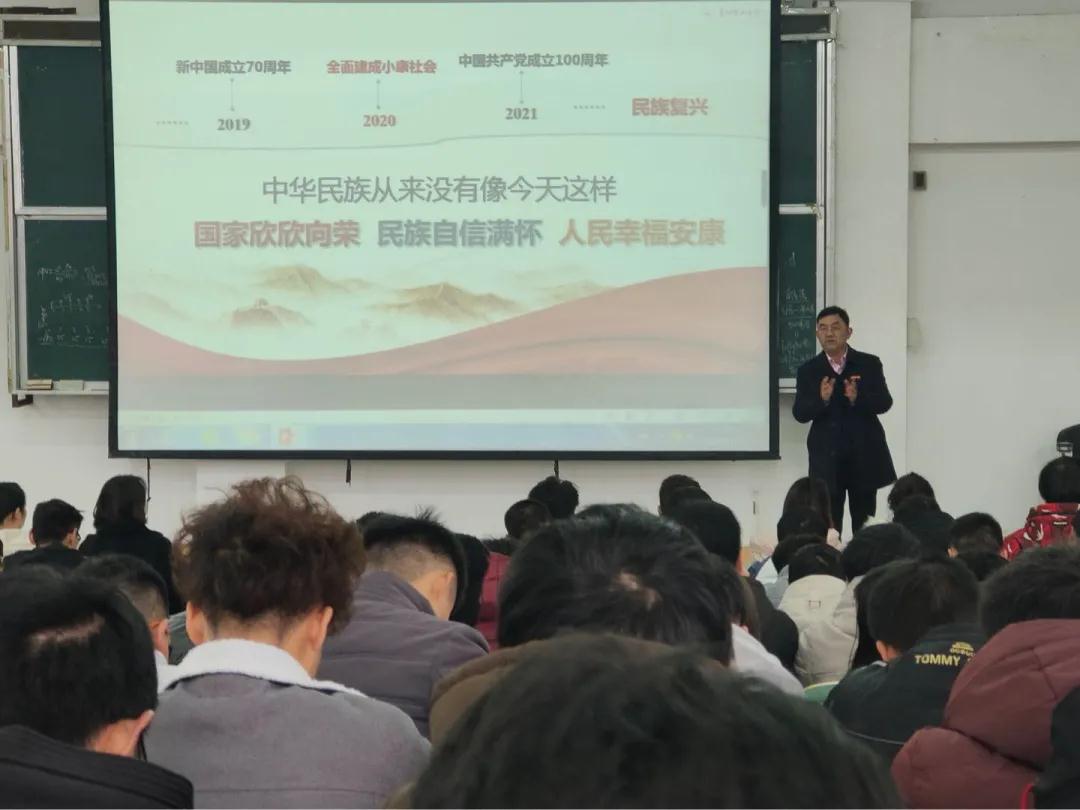 本网讯 11月27日下午,校党委书记曾羽以“决胜全面小康、共襄复兴伟业”为题,为资源与环境工程学院和电气与信息工程学院2018级学生上形势与政策课。
