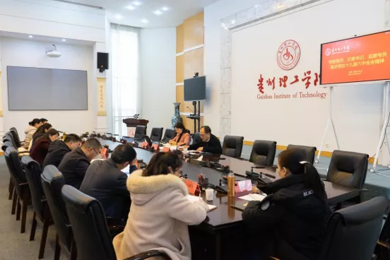 12月23日,学校党委委员、纪委书记、监察专员贺梦依在喀斯特会议厅宣讲党的十九届六中全会和省委十二届十次全会精神。纪委党支部、土木工程学院教师党支部、外国语学院教师党支部全体党员,学校巡察办、基层党组织纪检委员代表参加宣讲会。会议由纪委副书记叶栋国主持。