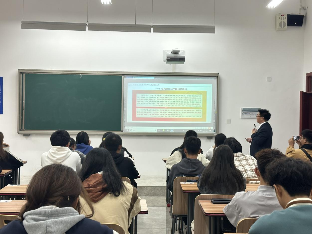 夏雍重点讲解了马克思主义中国化时代化的最新理论成果--习近平新时代中国特色社会主义思想。重点强调了“十个明确”“十四个坚持”“十三个方面的成就的相互关系”。他结合中国现在的实际情况,带领同学们一起了解新时代新阶段中国共产党的中心任务,鼓励同学们独立自主,努力学习,跟着中国共产党的步伐前进,成为高素质人才,早日实现我国高水平科技自立自强的目标,强调了高质量发展的重要性和以习近平新时代中国特色社会主义思想为指导的重要性,阐明了我国制度的完善性。
