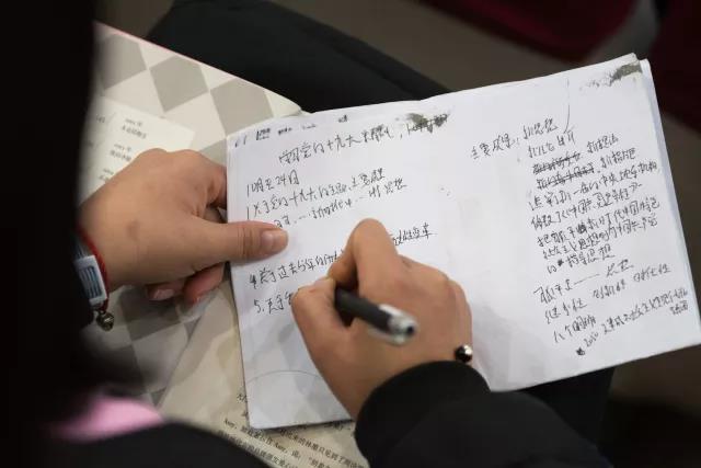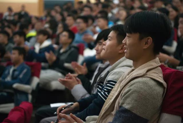 “十九大关键词有哪些?” 曾羽向台下的学生抛出问题,鼓励他们踊跃表达自己对十九大精神的感悟和思考。
