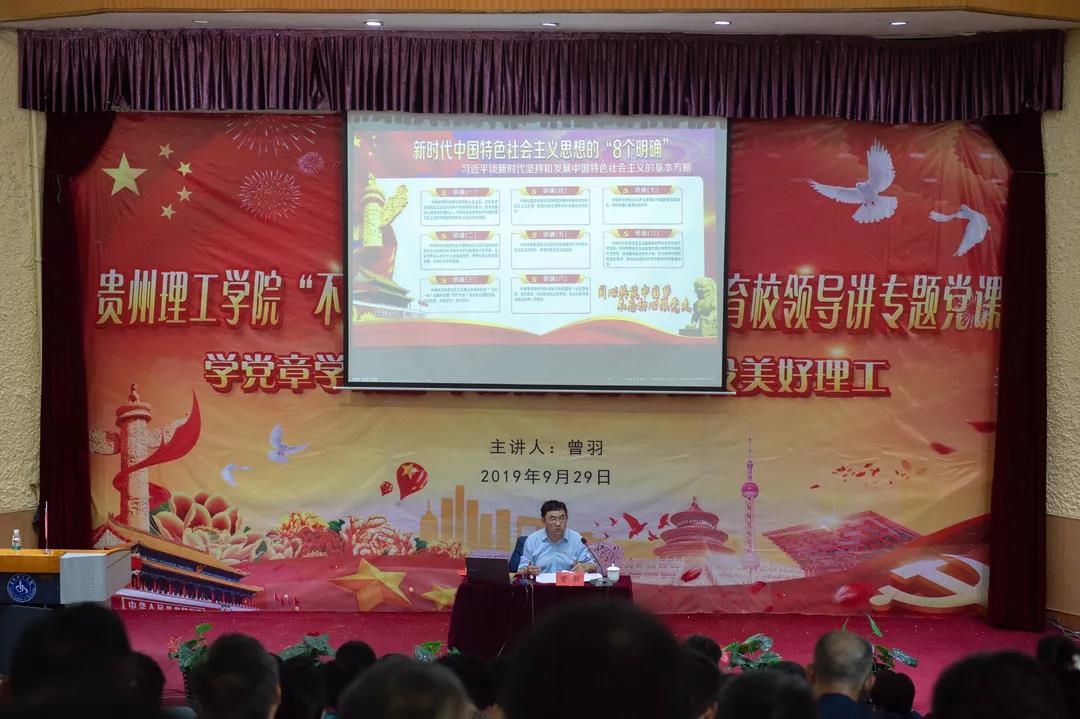 本网讯(党委宣传部 姚楠/文)为帮助我校全体党员切实将“不忘初心、牢记使命”主题教育和学校迎评中心工作紧密结合起来,把党的最新理论成果运用到打赢合格评估的战场上来,坚持以教育为带动,牢记建校初心,践行办学使命,进一步激发广大师生党员干事创业勇担当、攻坚克难作表率的热情,9月29日下午,党委书记曾羽为学校科级以上干部以及党员师生代表作题为《学党章学纲要 牢记初心使命 建设美好理工》的专题党课。