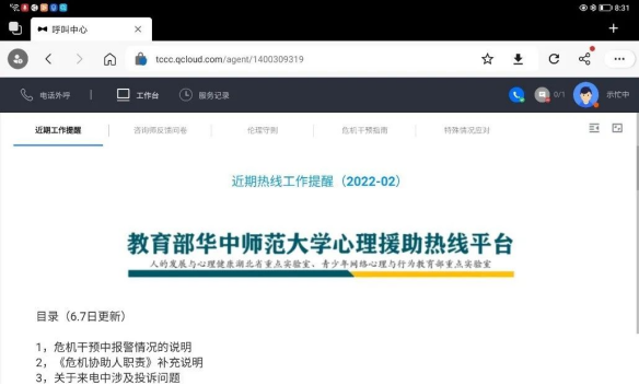 中心专职教师积极响应教育部、省教育厅号召,组织专职教师积极参与“教育部华中师范大学心理援助热线”及“贵州省教育系统疫情心理援助平台”工作,充分发挥示范中心社会服务功能,为广大群众提供心理援助。
