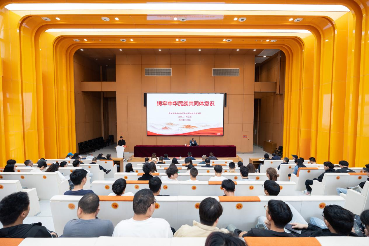 为深入贯彻落实习近平总书记关于加强和改进民族工作的重要思想,加强学校铸牢中华民族共同体意识宣传教育,5月30日下午,学校特邀铸牢中华民族共同体意识省级宣讲员,贵州师范大学历史与政治学院教授,博士生导师韦正富到校开展专题宣讲。学校党委副书记胡兴灿,党委委员、党委宣传部、党委统战部部长李朋出席,学校有关部门负责人,各学院党总支书记、统战委员,辅导员、思政课教师代表,学生代表参加。宣讲会由李朋主持。