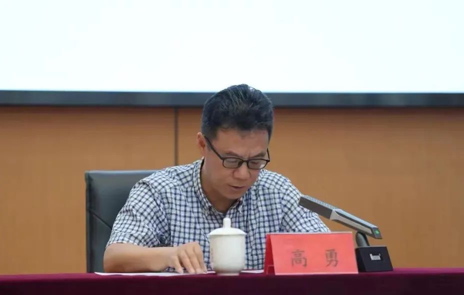 高勇宣读学校成立审核评估评建领导小组和评建办公室的文件。
