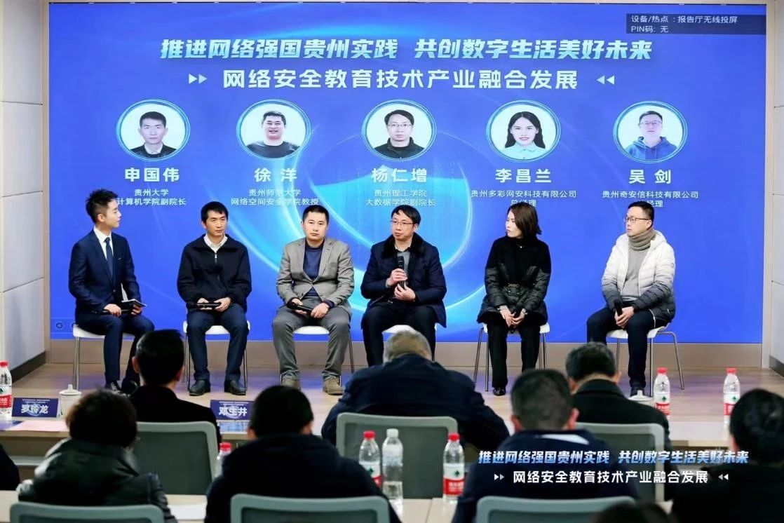 3月1日,由省委网信办、省教育厅指导的“推进网络强国贵州实践,共创数字生活美好未来”系列活动的第二场主题活动“网络安全教育技术产业融合发展”在贵州大学举行。活动以主题对话的形式,旨在更好地构建教育技术产业融合的网络安全人才培养机制,为贵州输送更多优秀专业的网络安全人才,促进贵州网络安全产业发展。大数据学院副院长杨仁增代表我校参加活动。