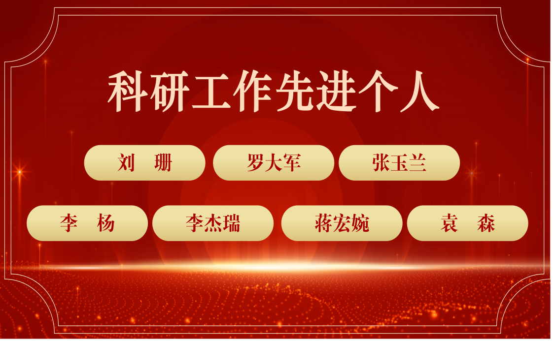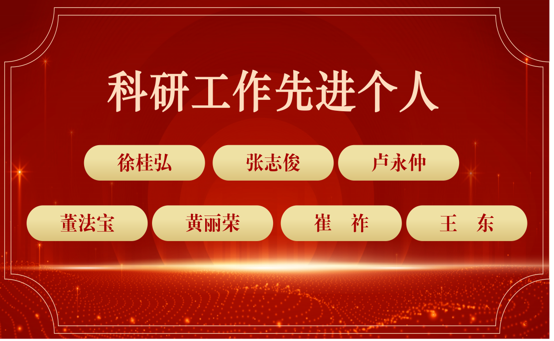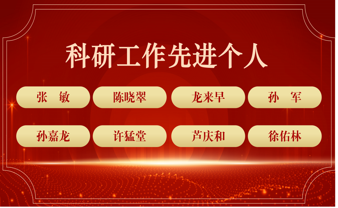 潘良明和李少波为获得科研工作先进集体、先进个人、优秀科研管理工作者的单位和个人颁奖。