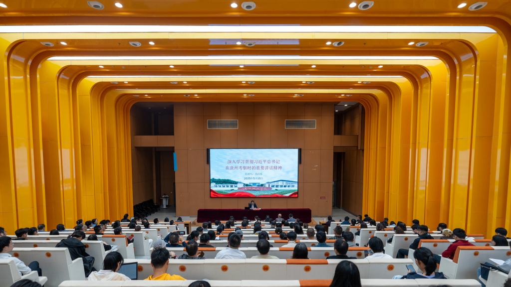 2025年5月15日下午,校党委书记苏向东在图书馆一楼报告厅,宣讲习近平总书记在贵州考察时的重要讲话精神。