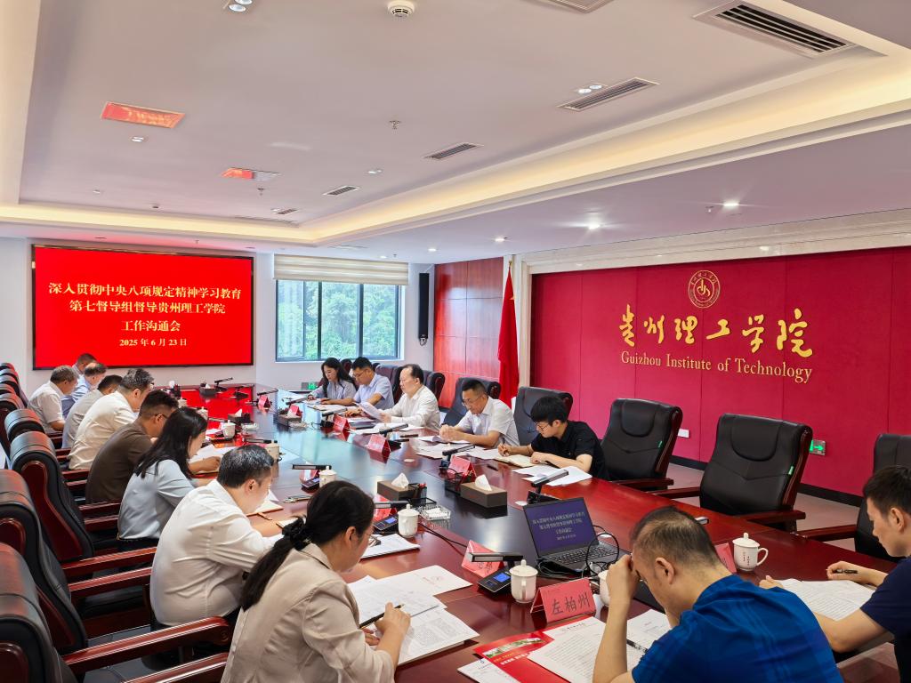 6月23日,省委第七督导组与贵州理工学院在知行楼605会议室召开学习教育工作沟通会。督导组组长朱新武出席并讲话。校党委书记苏向东主持会议。