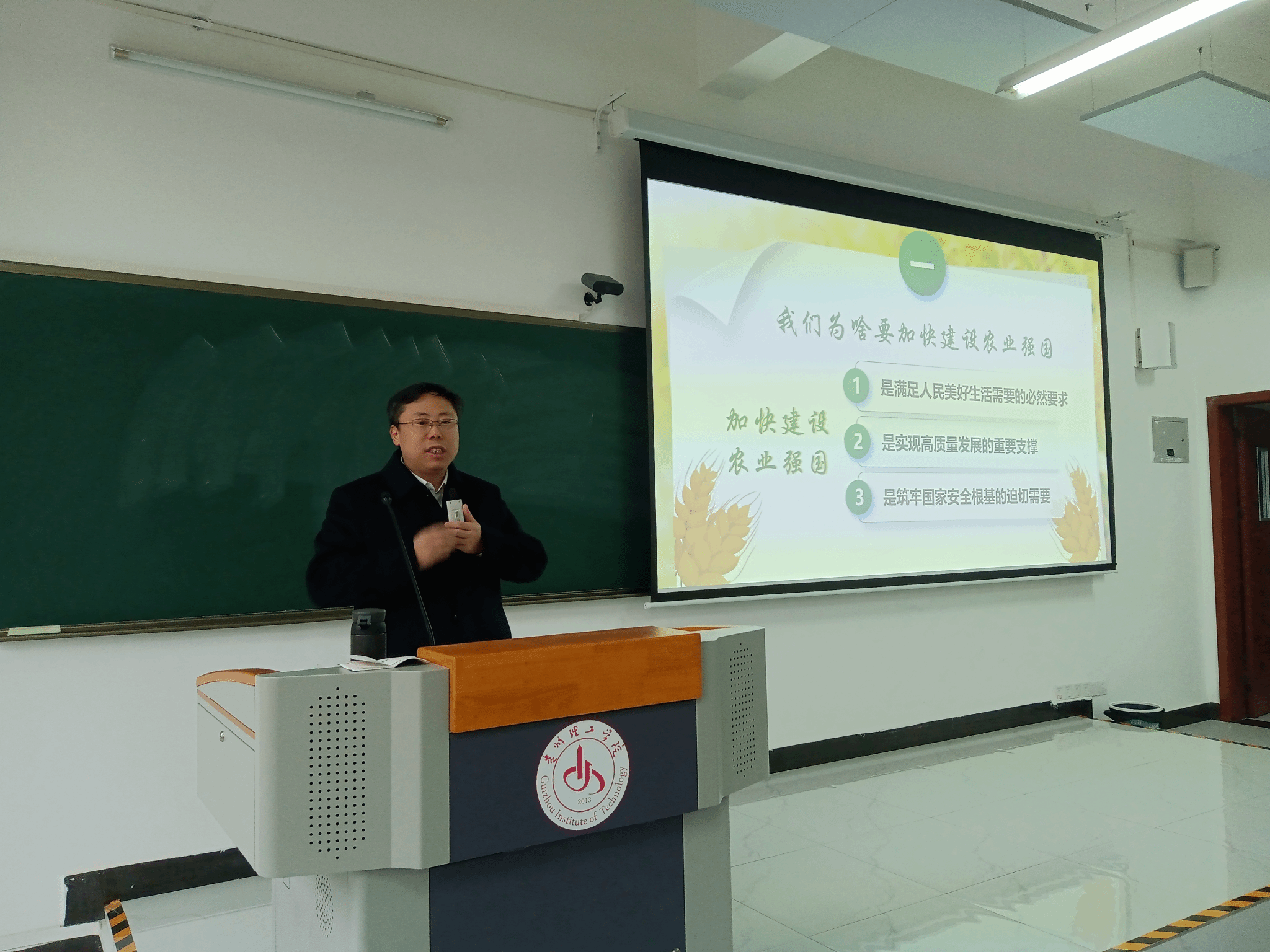 12月15日,副院长李少波以“阔步迈向农业强国”为题,为材料231、232班学子专题授课。他以2024年国家经济与“三农”发展亮眼数据为切入点,阐释了农业强国对民生保障、高质量发展和国家安全的重要意义。围绕“建设什么样的农业强国”,详细解读了农业强国“供给保障强、科技装备强、经营体系强、产业韧性强、竞争能力强”的共同特征,强调我国农业强国建设必须立足“大国小农”基本国情,坚持中国特色社会主义制度优势,走因地制宜、多元发展与“四化”同步协调推进的特色道路。他指出,材料科学在种业振兴、农机升级、农产品保鲜等农业强国建设关键领域作用突出。他寄语学子厚植爱农情怀,将个人理想融入国家战略;练就兴农本领,深耕农业领域材料应用难题;勇于创新实践,把课堂所学转化为服务农业现代化的实际能力。