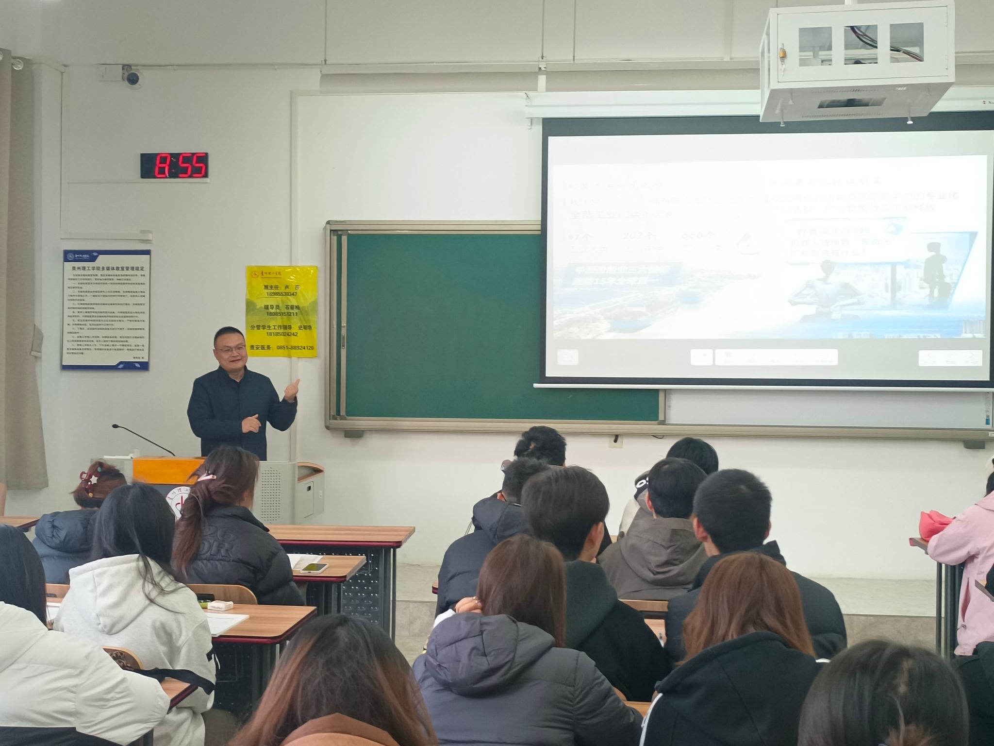 11月18日,校党委副书记任洲麒以“正确认识中国经济热点问题”为题,为工管232班、造价232班同学们专题授课。他从“应对外部冲击的能力底气何来”、“为何要促进民营经济发展壮大”“做强国内大循环”三方进行讲解,引导青年学生正确认识中国经济发展现状,增强对国家经济发展的信心与底气。他鼓励同学们以此次课程为起点,养成关注经济形势的习惯,学会用辩证思维分析经济热点,将专业学习与国家发展需求紧密结合,在学习中锤炼本领,在实践中增长才干,努力成为适应高质量发展需要的高素质人才,在中国式现代化建设的浪潮中书写青春华章。