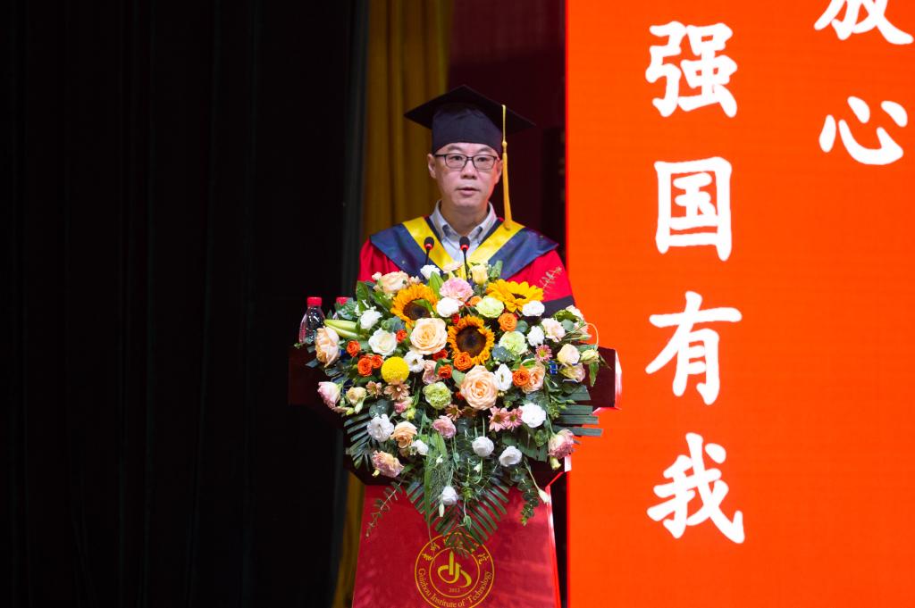 “但愿50年后返校时的你,回首往事,能够看得起现在的你。但愿50年后的你们,依然能保持如同今天这般的情绪度,仍然洋溢着如同今天这般的俊杰风流与器宇不凡、以及‘创造美好事物的恢弘之气’”土木工程学院教授徐桂弘作为教师代表发言,寄语同学们“做一个有温度、有理性、有思想的人”。